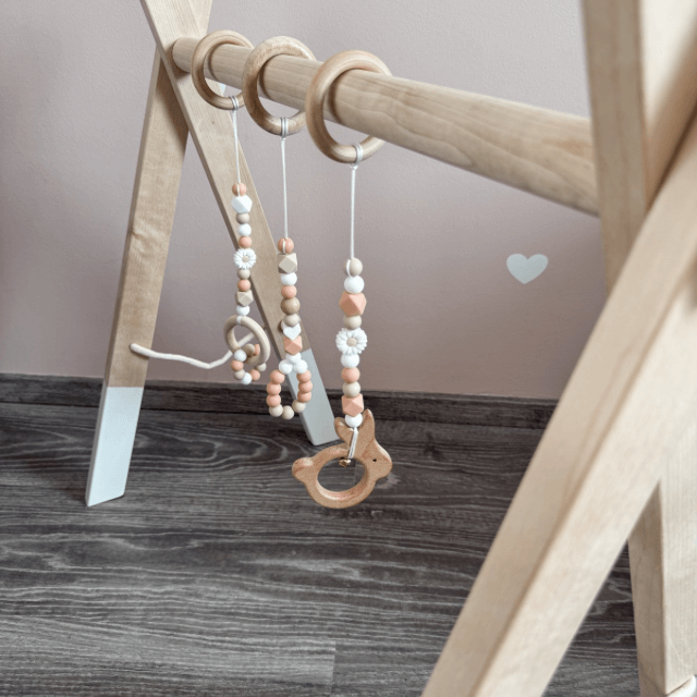 A fa elemek natúr bükkfából készülnek. A natúr bükkfa egy természetes anyag, ami csomó és szálkamentes, így teljesen biztonságos a babák számára.