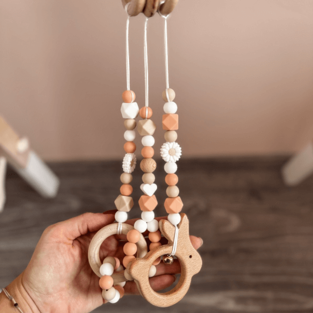 A cumiláncokat, rágcsaláncokat, rágókákat, anyaláncokat és babakocsiláncokat (továbbiakban termékeket), bababarát fertőtlenítő folyadékos törlővel vagy bababarát mosogatószeres, langyos vizes törlővel töröld át, majd töröld szárazra, különösen figyelve a fa elemekre és a csatok fém részére.